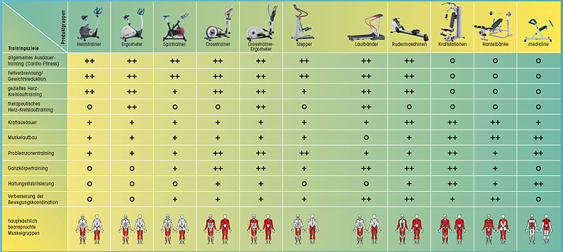 Planmäßig durchgeführtes Muskeltraining ist die beste vorbeugende Maßnahme gegen Haltungsschwächen, Bandscheibenproblem und Beschwerden des Bewegungsapparates. Neben diesem gesundheitsfördernden Aspekt werden durch Muskeltraining auch fiigurbetonte Zielsetzungen wie Bodybuilding oder Bodyshaping verfolgt.