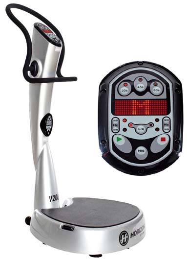 KONSOLE VIBRATIONSPLATTE V3000 mit: Zeit, Frequenz, Amplitude, Vorgabemöglichkeit, Anzeige-Fenster blaue LED-Anzeige, Display-Anzahl 2 (Stand und Sitz-/Liegeposition), Programm-Gesamtzahl 5 (Unterkörper, Oberkörper, Ganzkörper, Bauch, Manuell), Direktwahltasten Zeit, Frequenz, Amplitude.